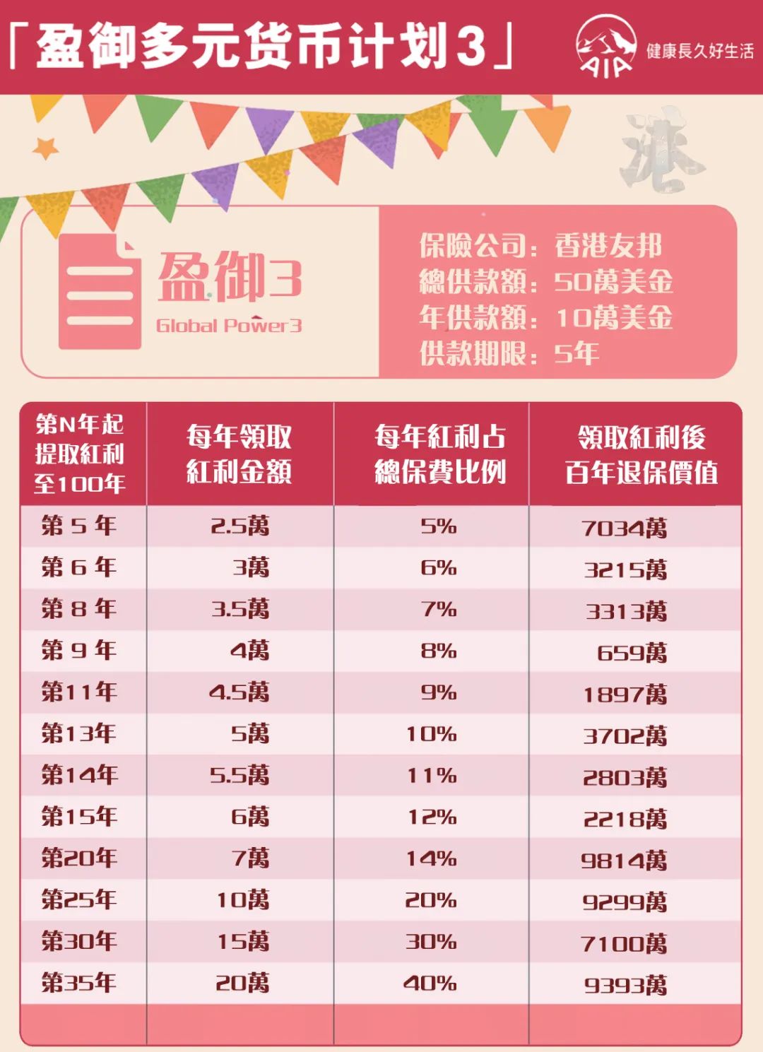 「盈御多元货币计划3」提供更灵活货币转换选项,可由第2个保单年度终结后起行使,让您早着先机捉紧环球机遇,满足您多变的财富规划需要